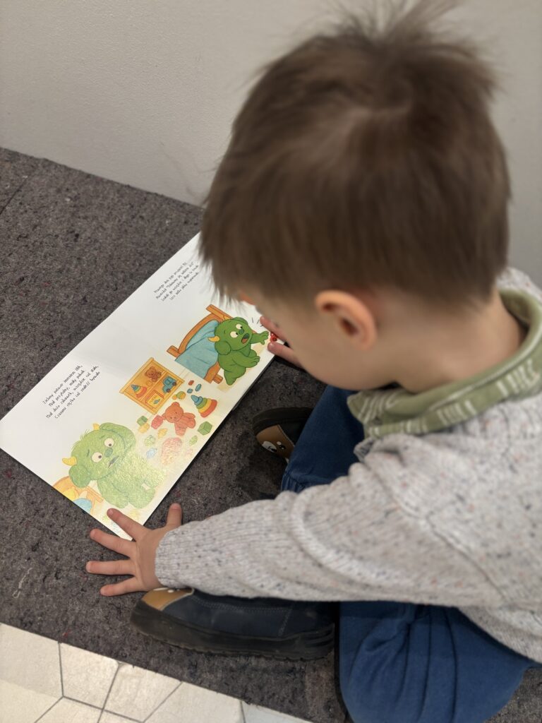 Bomblasowi czytaliśmy od początku jego jestestwa. Nasz wieczorny rytuał to czytanie bajki i dobranoc… i siku i picie i „mamo muszę Ci coś powiedzieć” po czym słucham 10 minut historii o złodziejach wpadających do BULKANU. Książki jednak pokochał, bo sam buszuje po swojej biblioteczce i choć litery to nadal dla niego ciąg znaczków to twierdzi, że czyta i ja to szanuję.