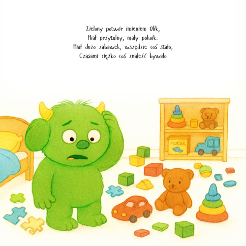 „Olik poznaje 5S” to ciepła, rymowana opowieść o potworku, który odkrywa, że pięć prostych kroków może zmienić sposób, w jaki działa jego mały świat.