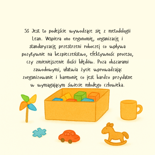 Idealna dla dzieci 3–6 lat, rodziców i nauczycieli, którzy chcą wprowadzać wartości Lean w naturalny, przyjazny sposób.